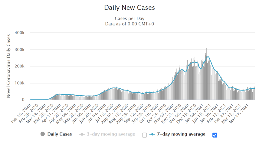 The major risk continues to be that a more contagious strain of the virus could take root and accelerate infections before vaccinations get sufficient traction. We are seeing some signs of this. Still, overall, the medical risks are contained and will decline as vaccinations advance.